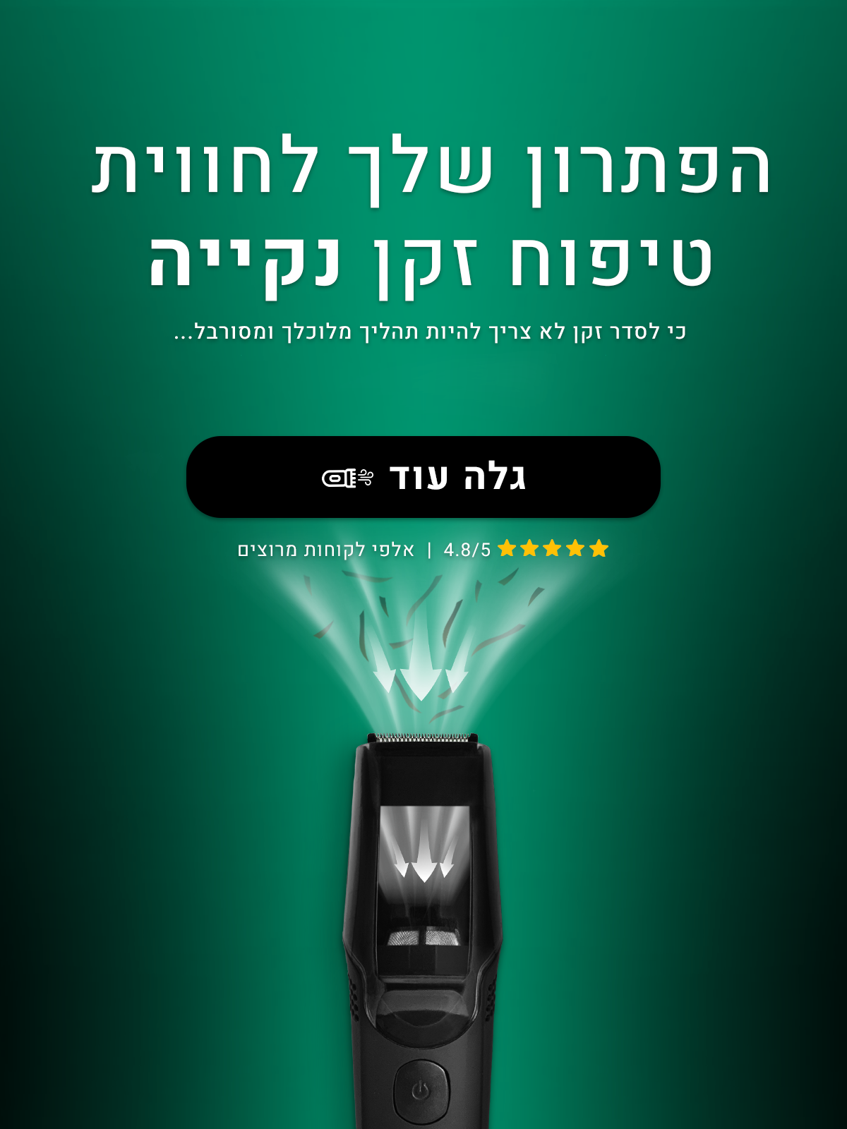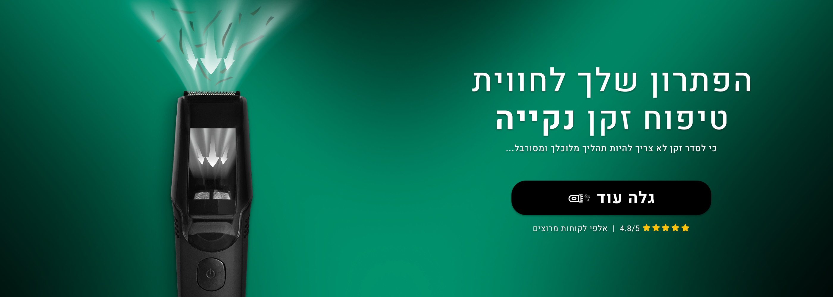 עד היום, סידור זקן הסתיים בנקיון מתיש. עם טכנולוגיית השאיבה שלנו – אתה מסיים עם זקן מדויק וסביבה נקייה, בלי להשאיר אחריך עקבות.