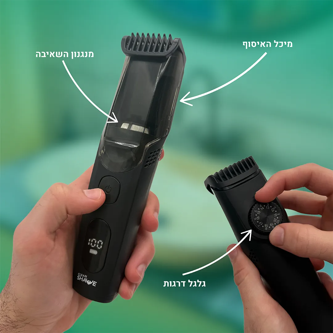 מעצב זקן עם טכנולוגית שאיבה חכמה למניעת לכלוך
