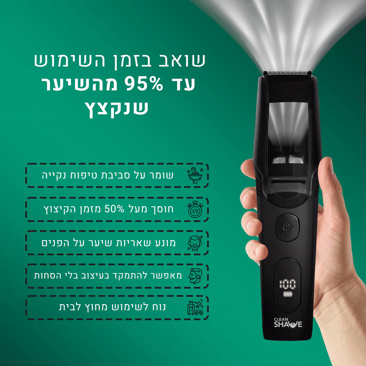 לסדר זקן זה חלק מהשגרה שלך - אין סיבה שהיא תהיה מלוכלכת. הגיע הזמן לעבור למעצב הזקן של CleanShave עם טכנולוגיית שאיבה חכמה - לתוצאה מדויקת וכיור נקי, בלי שערות בכל מקום.